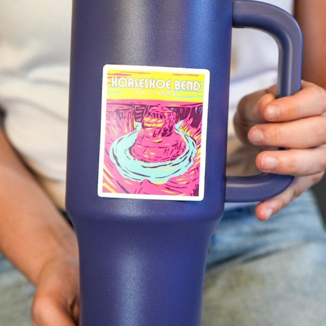 The Horseshoe Bend Sticker uses vibrant colors to bring a playful and imaginative take on the iconic natural formation. With bold hues and creative design, this sticker adds a lively and artistic flair to any surface. Ideal for nature lovers and art enthusiasts alike.