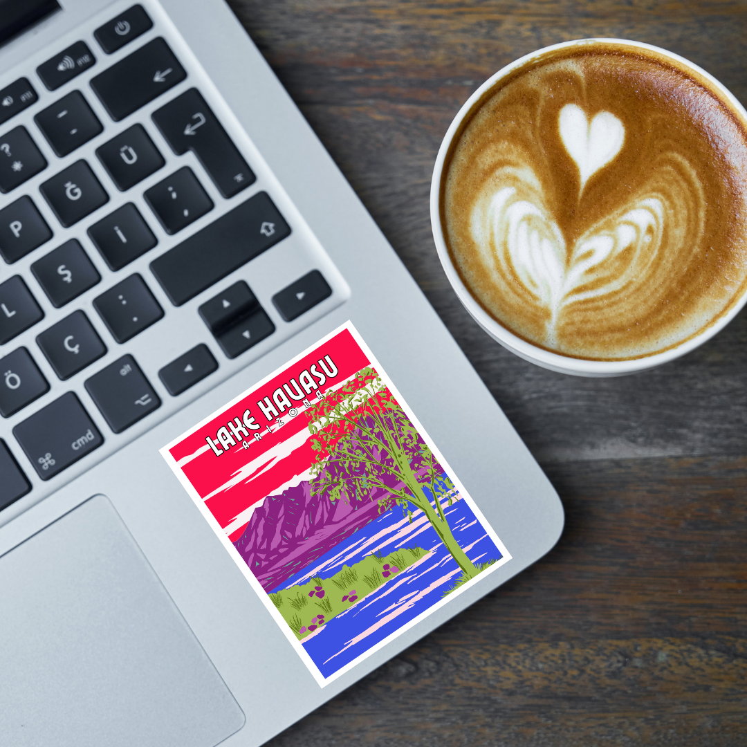 The Lake Havasu: Arizona Sticker showcases vibrant colors that bring to life both the stunning state park and the charming town. This design highlights the breathtaking lake, natural beauty, and lively community, making it a perfect tribute for those who appreciate this unique desert destination.